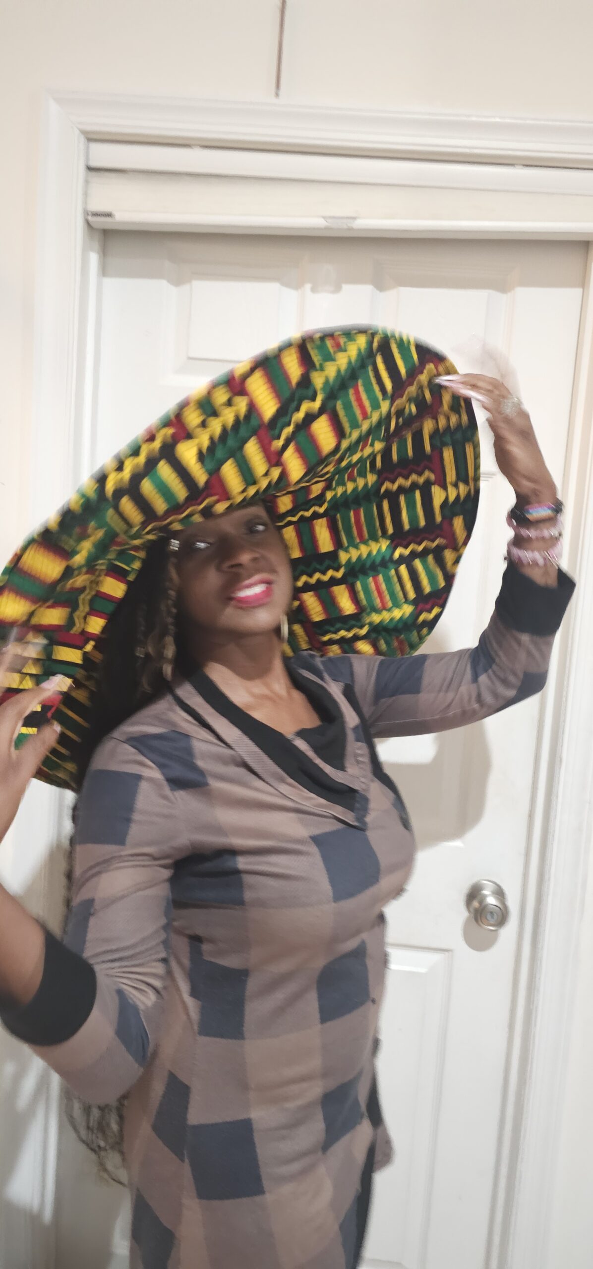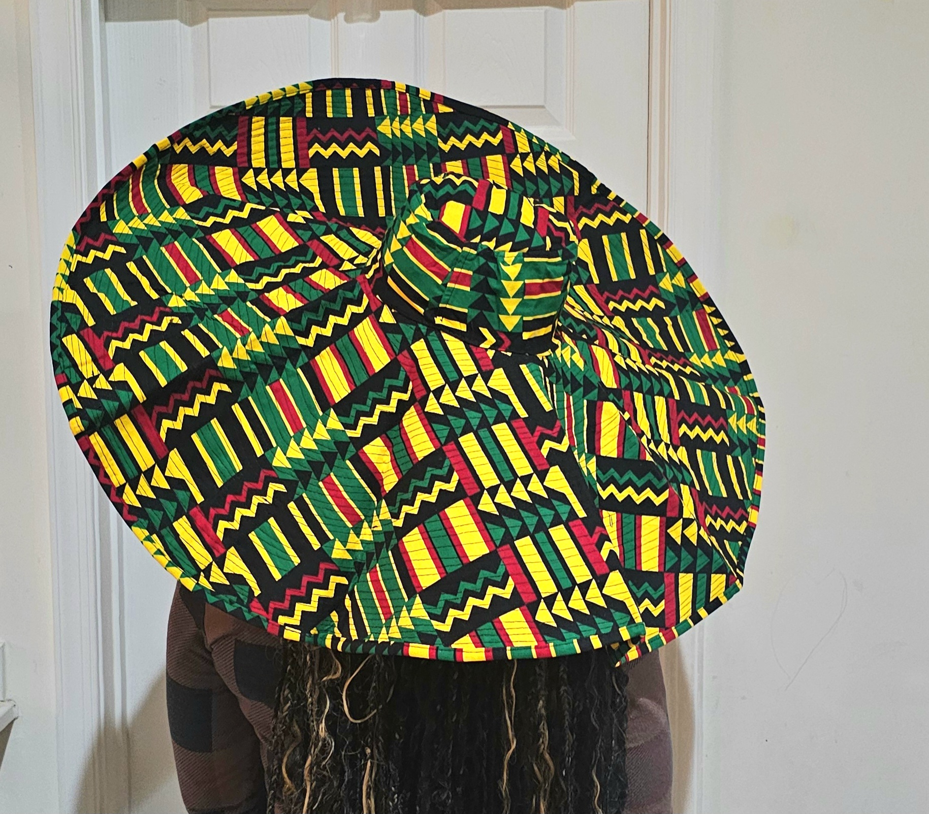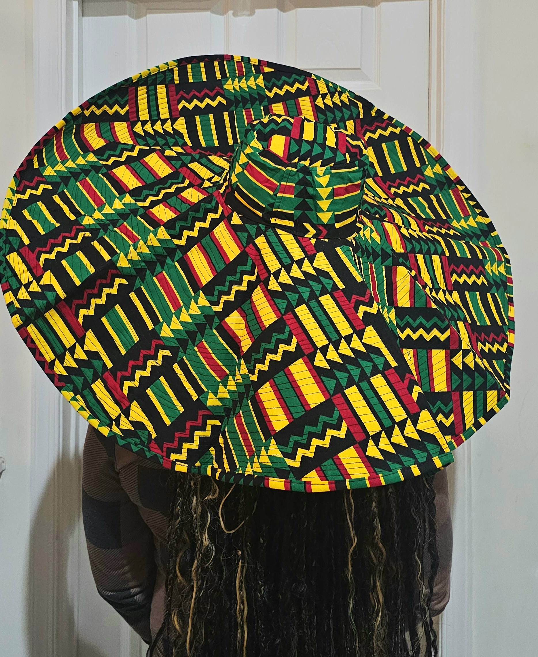 Celebrate bold artistry with this oversized hat inspired by African geometric textiles. The wide brim and vibrant zigzags, triangles, and stripes make it a standout accessory for festivals, cultural events, or everyday fashion. Lightweight yet durable, it offers both sun protection and dramatic flair